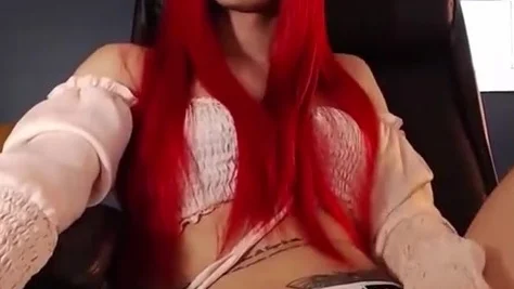 Redhaired Colombian Slim Shemale In Lingerie Wanks Off Her Big Shaft On Webcam